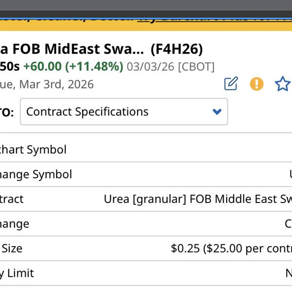 Giá ure Trung Đông đêm qua làm 1 hơi tăng 11%. Kinh khủng khiếp !!!! Tức tăng ~50% từ đầu tháng 1.26.