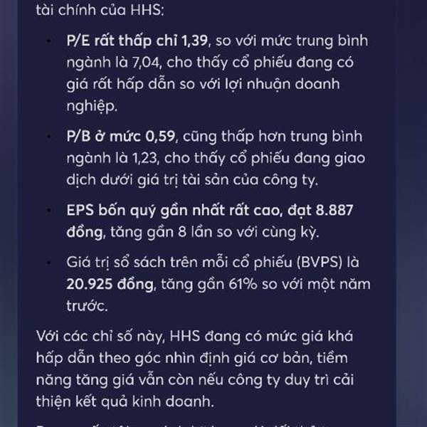 Mới hỏi AI bên app mbs, theo các cao nhân AI phân tích giá cổ phiểu HHS vậy là hợp lý ko?