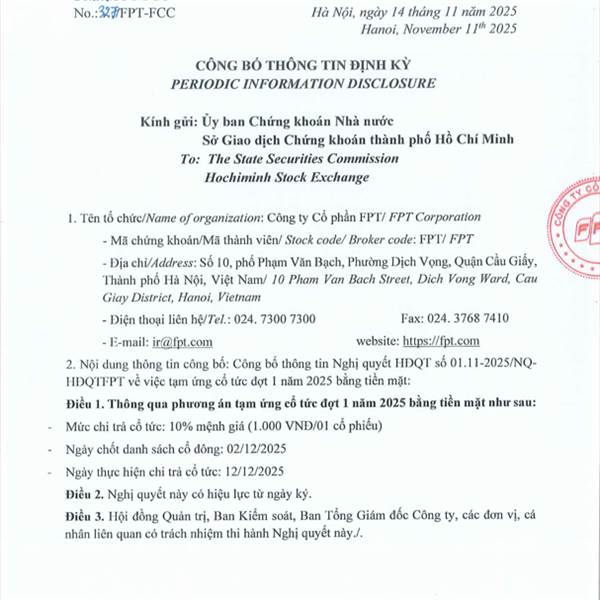 Đơn hàng ký mới tại thị trường nước ngoài của FPT vượt 33.300 tỷ đồng FPT đã thực hiện được 74% kế hoạch doanh thu và 81% mục tiêu lợi nhuận năm sau 10 tháng.