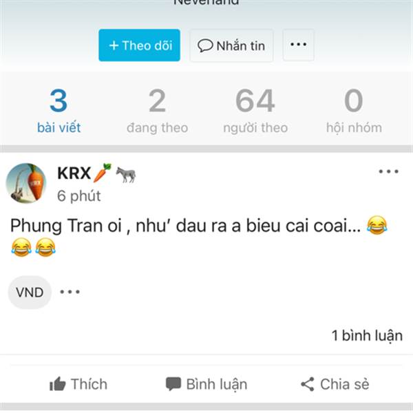 Hôm qua lên 20 tìm thằng cháu KRX thất lạc nay nó đỏ lại chồi lên chim lợn. Ko tiền biến cháu ơi