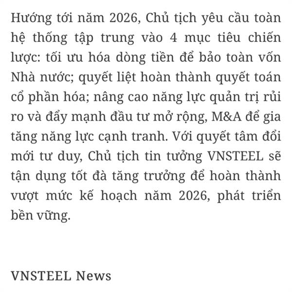 Năm 2025, các chỉ tiêu tài chính của Tổng công ty Thép Việt Nam - CTCP đều đạt và vượt xa kế hoạch, thể hiện hiệu quả điều hành và khả năng thích ứng linh hoạt của hệ thống doanh nghiệp. Tổng doanh th...Thêm