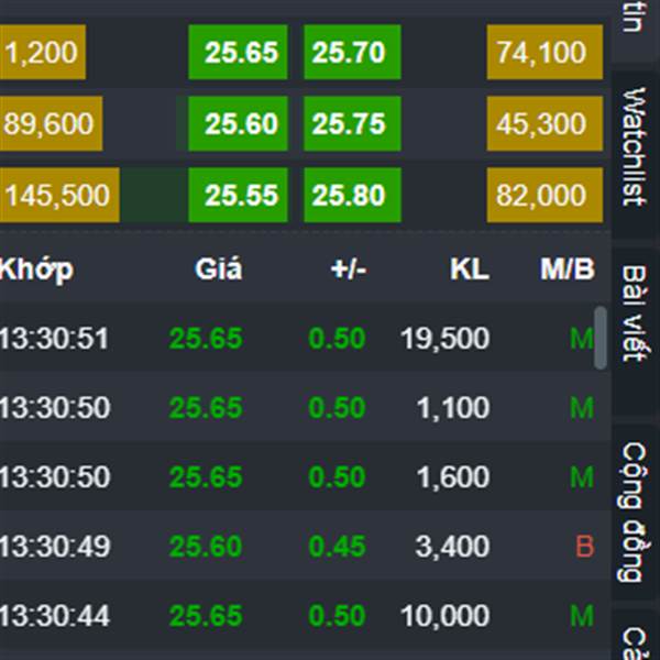 lái nó cố tình ép giá xuống để anh em thoát hết hàng ra cho nó gom lại giá rẻ (điển hình là hôm qua có lệnh bán 650k cổ giá 25.6 - trong khi giá đang là 25.4). Vậy mà nó húp 1 phát là hết sạch. Đợi đợ...Thêm