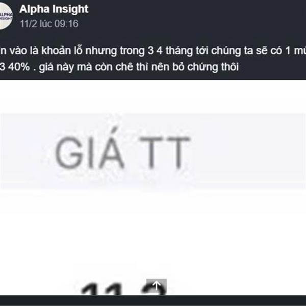 nhìn vào là khoản lỗ nhưng trong 3 4 tháng tới chúng ta sẽ có 1 mức lãi 3 40% . giá này mà còn chê thì nên bỏ chứng thôi