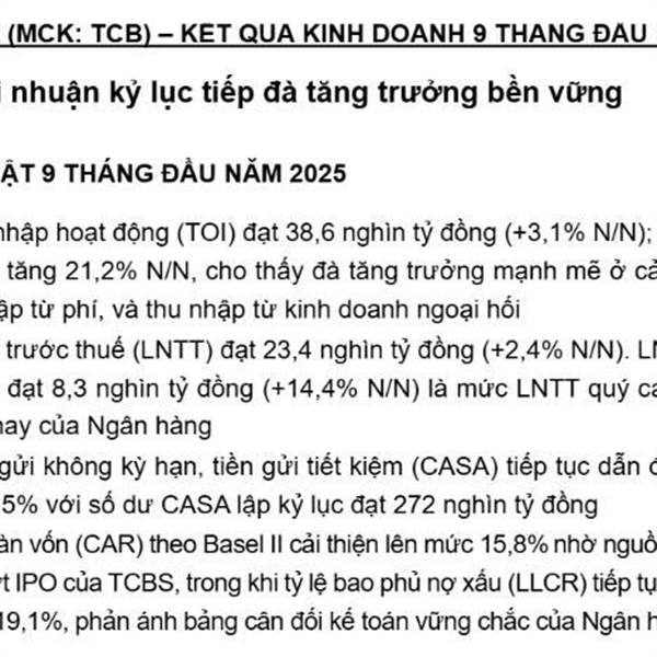 Lợi nhuận TT quý 3 8300k tỉ - cao nhất lịch sử, Casa 42%, nợ xấu giảm