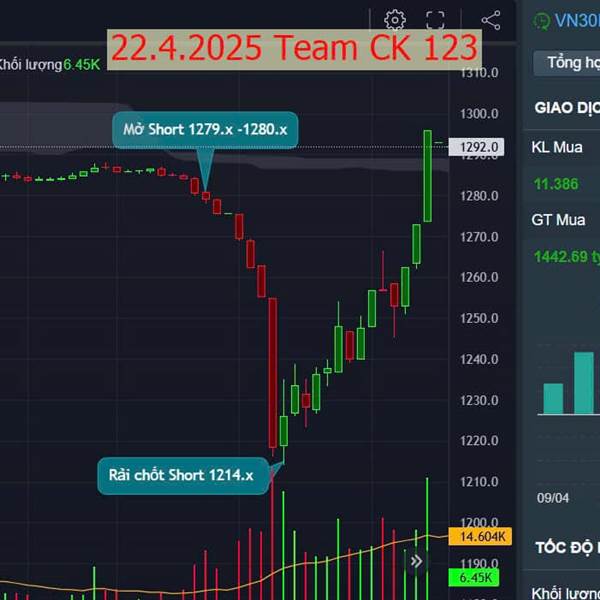 🍀🍀 CK PHÁI SINH 22.4.2025 TEAM CK123 🍀🍀 SHORT (LỢI NHUẬN > 60Đ) Phái sinh BIG SHORT, BIG LONG trong cùng phiên. Chuẩn xu hướng, chốt chắc lãi với Short, siêu lợi nhuận.