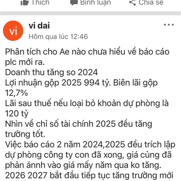 Phân tích cho Ae nào chưa hiểu về báo cáo plc mới ra.