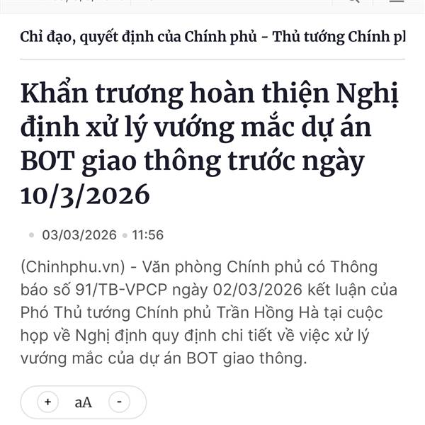 Chắc lại chuẩn bị nhận thêm cái thông báo của Ptt trần 10/4 nữa. Sau 9 tháng tính từ thời điểm QH ra NQ giải cứu 11 Bot. Sợ thật làm việc tắc trách, lãng phí thế này Doanh nghiệp và người dân còn khổ ...Thêm