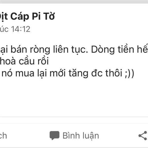 Con này ngoại bán ròng liên tục. Dòng tiền hết đở nổi. Vốn nội bão hoà cầu rồi