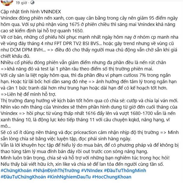 CẬP NHẬT VNINDEX hết phiên sáng 22.10 Vnindex vẫn trong kế hoạch dự tính chiều qua: kiểm định lại hỗ trợ quanh 1650 phiên sáng và kịp hồi phục nhanh về điểm số 1657 để đón hàng bị up bô phiên thứ 2 về ...Thêm