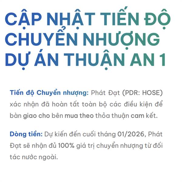 Cuối tháng 1/2026 cầm cục tiền bán Thuận An 1