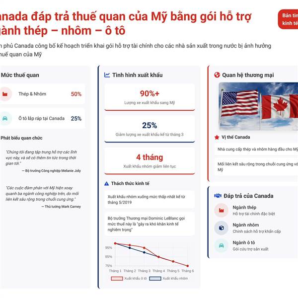 🔻 Chính phủ Canada công bố kế hoạch triển khai gói hỗ trợ tài chính cho các nhà sản xuất trong nước bị ảnh hưởng bởi thuế quan ...Thêm