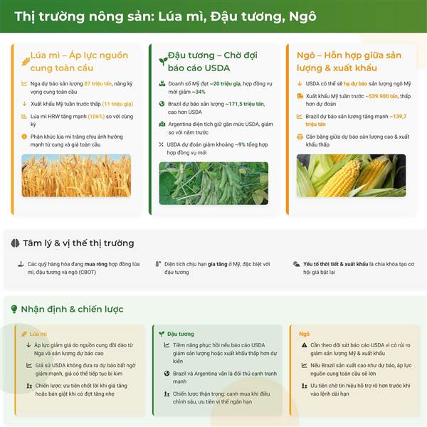 Trong khi đó, đậu tương và ngô đang chờ báo cáo USDA – yếu tố có thể quyết định xu hướng ...Thêm