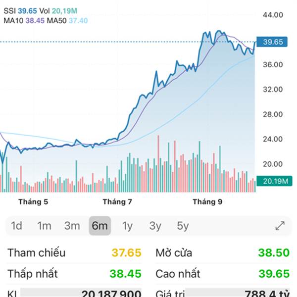 Hum nay vào lại SSI 41 liệu có ăn nhịp tới kg nhỉ! Mong SSI phá đỉnh 43 để tiến về 45-47 cuối tháng 10🙏👍