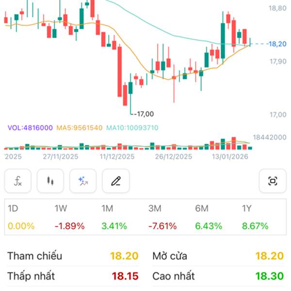 Xanh cuối phiên nhé👍 Vẫn >18.x trong phiên chắc xuống 17.7-17.8là hốt thêm nha!