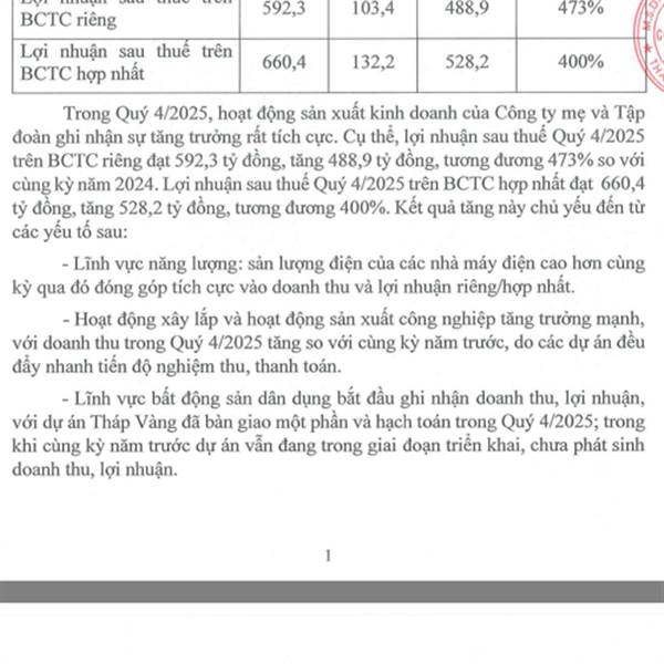 Kết quá kinh doanh quý 4/2025 và cả năm của PC1 quá ấn tượng! Lợi nhuận ròng quý 4/25 là 660 tỷ , cả năm là 1364.5 tỷ gần gấp đôi năm trước , riêng LN quý 4/25 gần bằng cả năm 2024. 660/709👍 Chỉ có g...Thêm