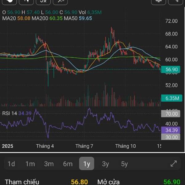 Khớp bán 57.4, chiều mua lại 56.4.