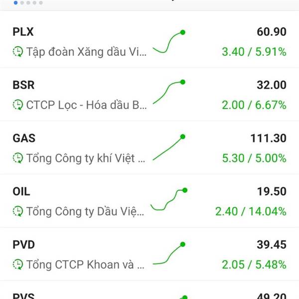 Giá dầu lên 100 USD thì GAS PLX BSR PVD PVS OIL hưởng lợi ngon luôn , sóng cổ Dầu Khí đang mạnh thì cứ giảm là múc