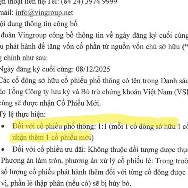 Cho mình hỏi, vậy sau khi nhận cổ phiếu thưởng, giá VIC có điều chỉnh xuống tương ứng với số cổ phiếu thưởng được phát hanh không?