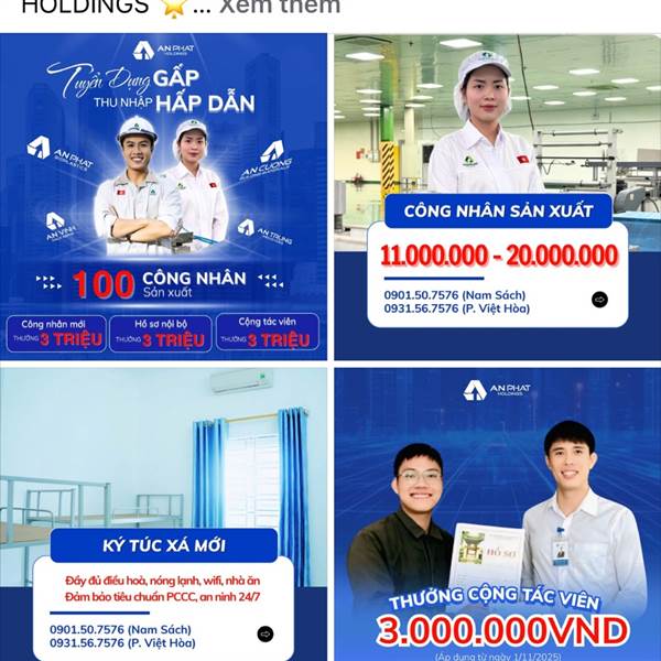 Sản xuất mở rộng, xuất khẩu tăng mạnh khiến cty phải đẩy mạnh nhu cầu tuyển dụng lao động tại các nhà xưởng sản xuất, ai đang thất nghiệp thì đăng ký mn nhé