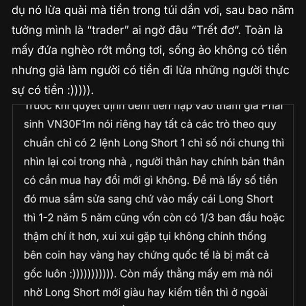 Long hay Short cũng là DỒN LỖ thôi :))))). Chán mấy cái thèn cò mồi chim mồi phái sinh cty chứng khoán với mấy đứa vô công rồi nghề “trader” lậm vô ba cái Long Short rồi huyễn hoặc mình giỏi thiệt sự ...Thêm