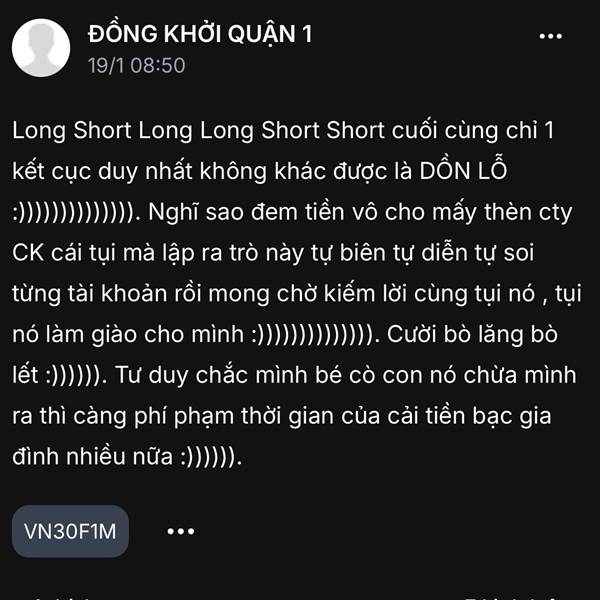 Cứ thò tiền thò tay vô trò Long Long Short Short là biết 99.99% là con đường dẫn tới DỒN LỖ :)))))))))). Vậy thôi mà cứ chơi quài. Cứ đem tiền trong nhà ra cho free tụi cty CK nuôi đám cò mồi phái sin...Thêm