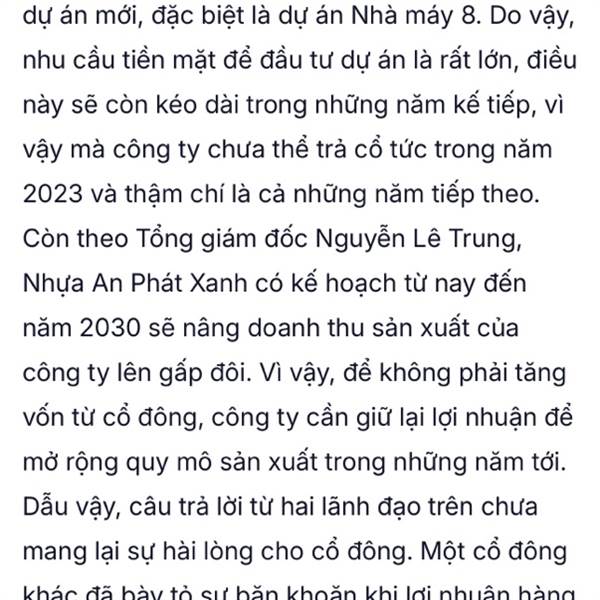 Năm 2024 nhỏ lẻ tham dự ý kiến lèo nhèo, chất vấn chủ tịch các thứ làm chủ tịch bực mình. Nên sang 2025 chủ tịch đe'0 mời nhỏ lẻ nữa cho nó nhanh. Lại sắp tổ chức Đại hội cổ đông thường niên năm 2026 ...Thêm