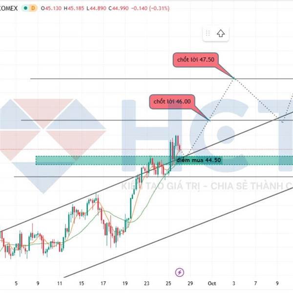 Giá bạc đã bật tăng tốt từ vùng hỗ trợ 44.50, hiện giữ trên trendline tăng. Thị trường đang định giá khả ...