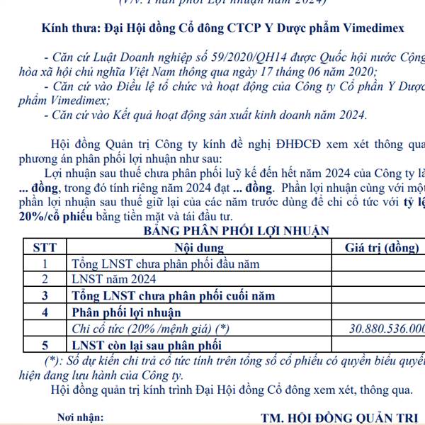 dự thảo chia 20% cổ tức nhé. AE cứ hold ăn cổ tức ngon