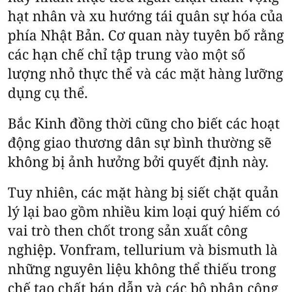 Trong đó Vonfram,Bismuth được nhắc đích danh. Khủng hoảng thiếu giờ càng nghiêm trọng hơn