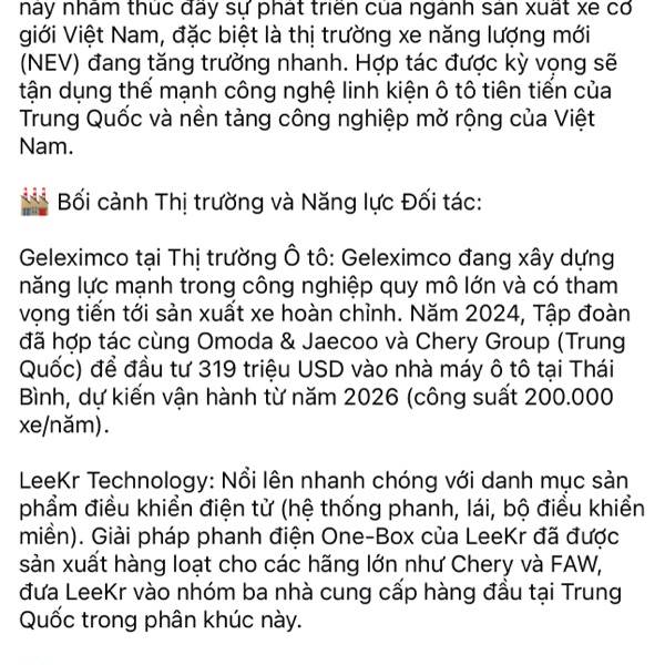 Riêng mảng sx kinh cho xe oto điện ở nhà máy Thái Bình thì VTB đã êm rồi, còn cam AI, chíp bán dẫn, UAV, m...Thêm