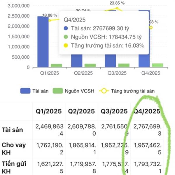 Năm nay ctg liệu có được định giá lại không. So sánh với vcb thì các chỉ số đều tương đương. Lợi nhuận 2026 ctg dự kiến còn cao hơn vcb nữa. Vốn hoá ctg mới bằng già nửa vcb thôi.