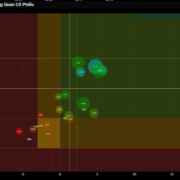 Em gửi quý a/c định lượng tổng quan các nhóm ngành Ngân hàng, Bất động sản, Chứng khoán tính đến cuối phiên ngày 16/10.