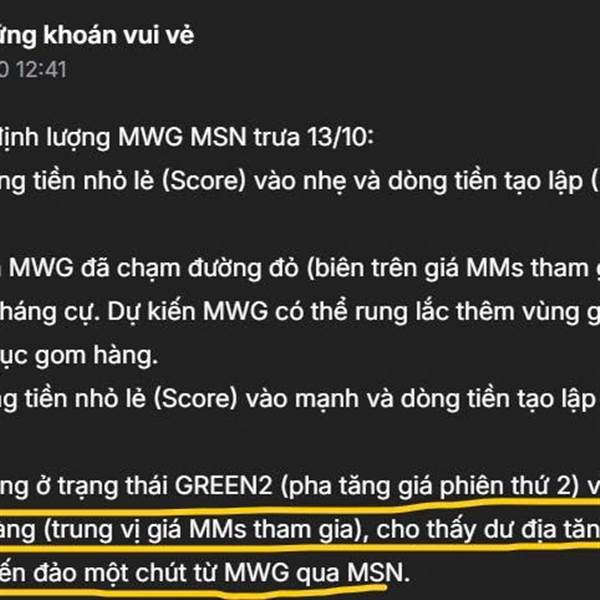Cập nhật định lượng MWG MSN cuối phiên 16/10: