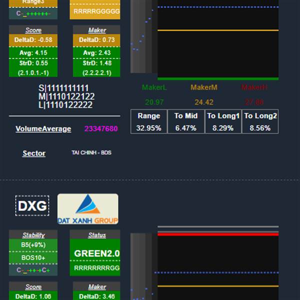 - DXG dòng tiền nhỏ lẻ (Score) vào nhẹ và dòng tiền tạo lập (Maker) vào mạnh.