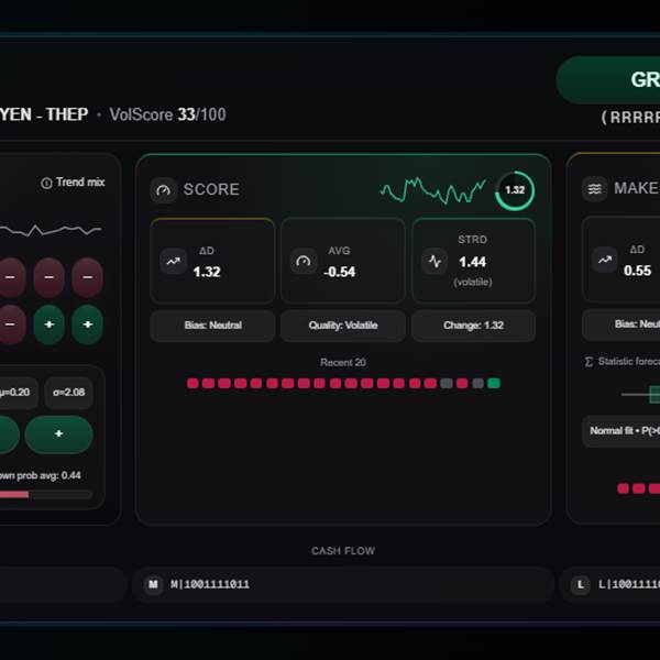 - Chỉ số Score (Dòng tiền NĐT cá nhân): Bias trung tính, giảm nhẹ trong ngày, biến động mạnh.