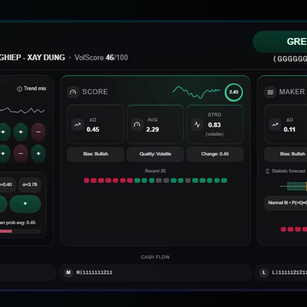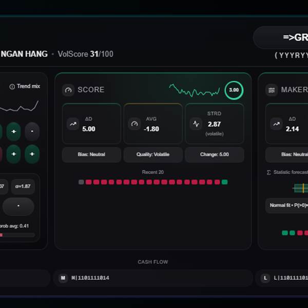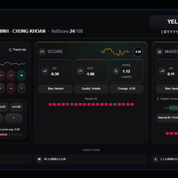 - Chỉ số Score (Dòng tiền NĐT cá nhân): Bias trung lập, thoát mạnh trong ngày, biến động mạnh.