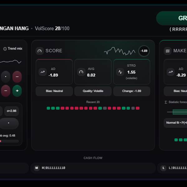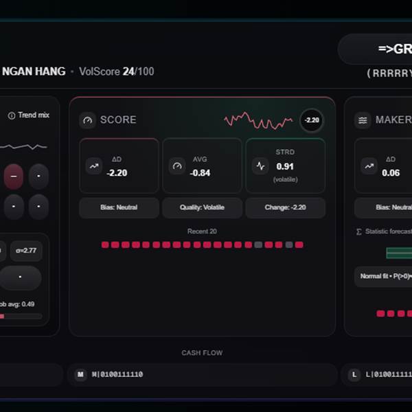 - Chỉ số Score (Dòng tiền NĐT cá nhân): Bias trung lập, giảm nhẹ trong ngày, biến động mạnh.