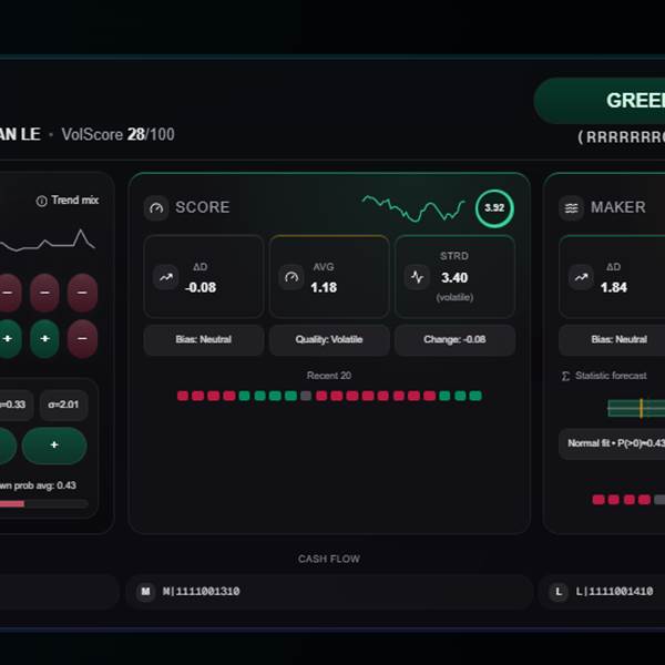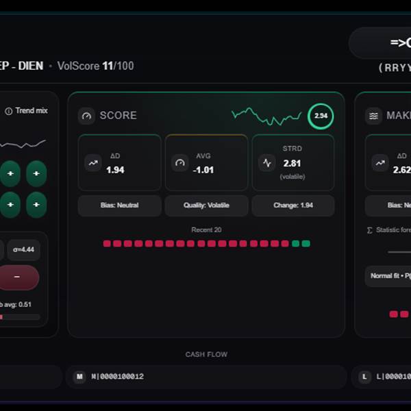- Chỉ số Score (Dòng tiền NĐT cá nhân): Bias trung lập, tăng mạnh trong ngày, biến động mạnh.