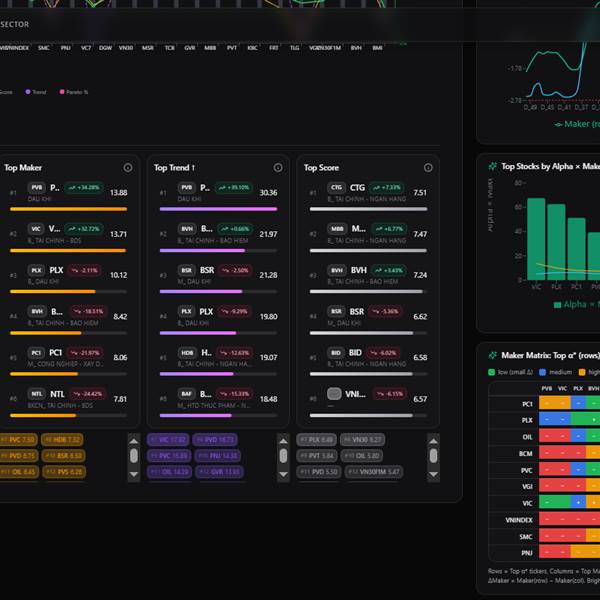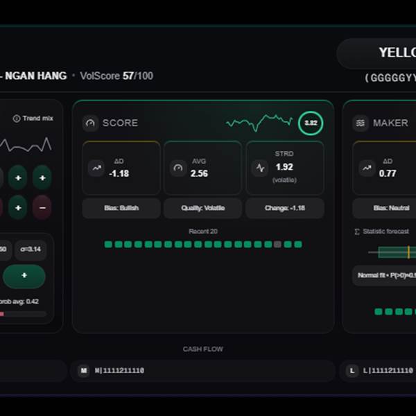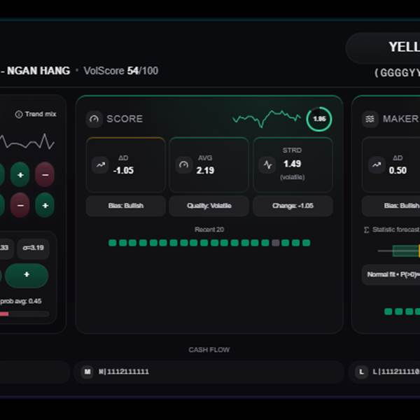 - Chỉ số Maker (dòng tiền tổ chức): Bias tăng (+7), cải thiện mạnh trong ngày. Chỉ số Maker tăng trong 5 phiên qua.