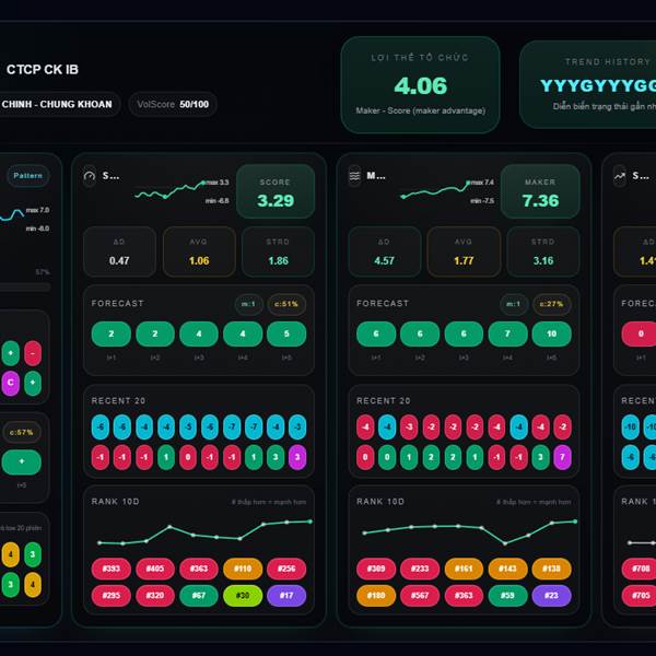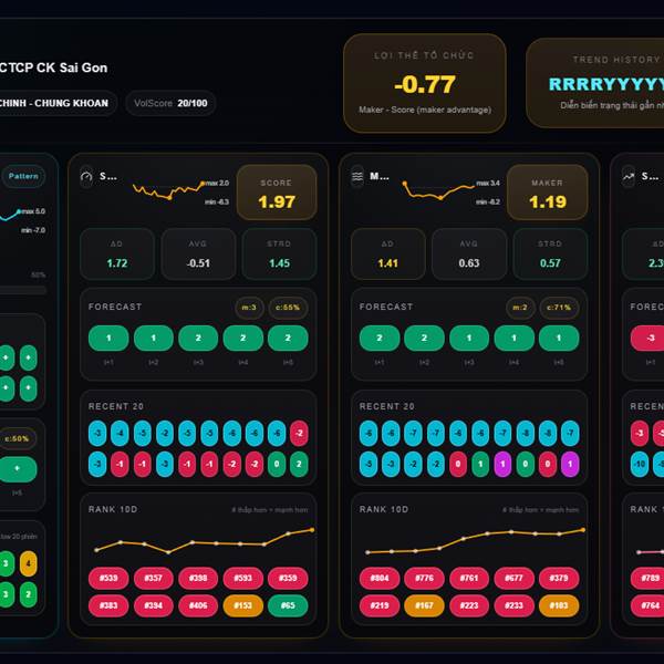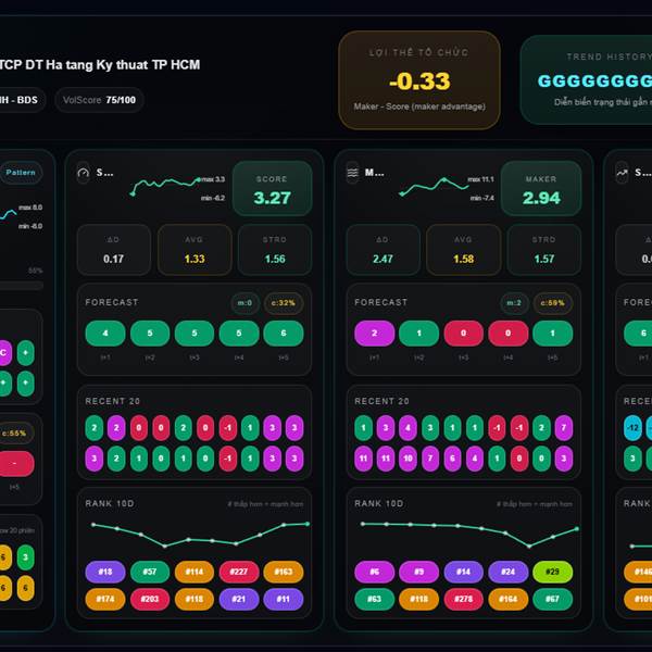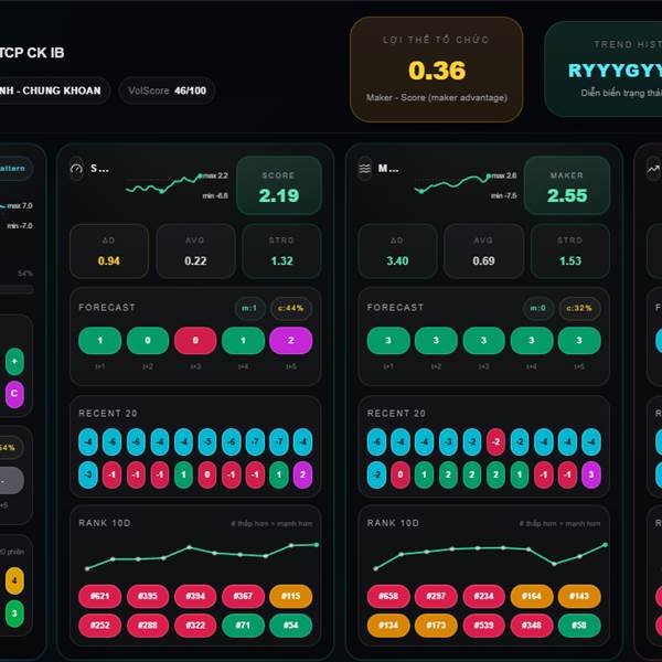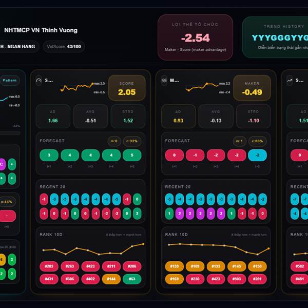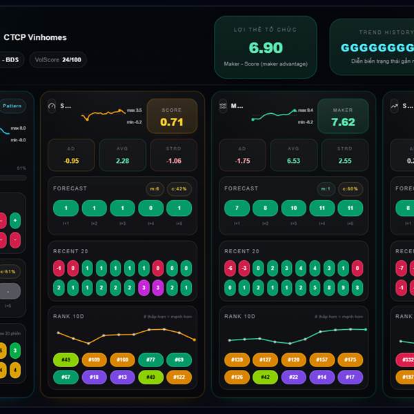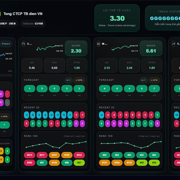 * Chỉ số Maker (dòng tiền tổ chức): Bias giảm -0.49, +0.93 trong ngày.