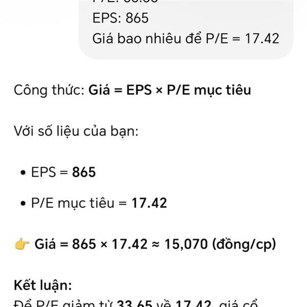 E hỏi Chart GPT làm sao để P/E con VPX = SSI thì nó bảo e như hình. Vậy quan điểm của e với giá này nếu có múc thì múc SSI ngon hơn nhiều