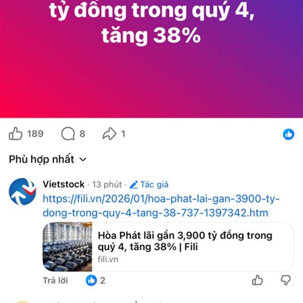 HPG: Hòa Phát tiếp tục mở rộng mảng bất động sản khi thành lập CTCP Phát triển Bất động sản Hòa Phát Nha Trang vào ngày 14/1/2026, tại tỉnh Khánh Hòa. Chỉ sau 1 tuần, doanh nghiệp này đã thực hiện tăn...Thêm