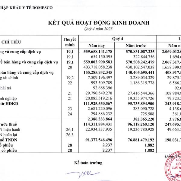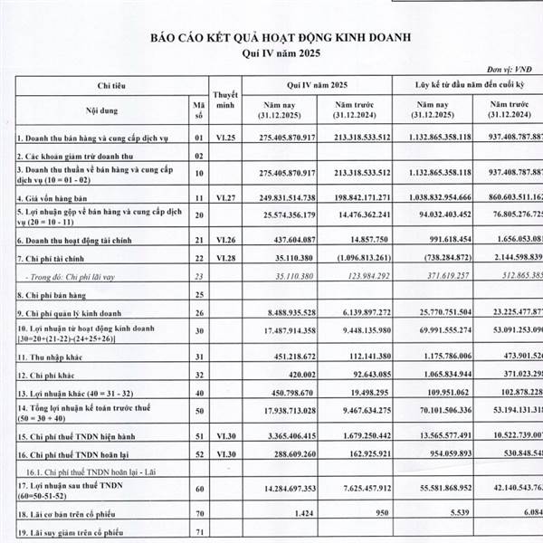 Update BCTC quý 4 lợi nhuận tăng mạnh