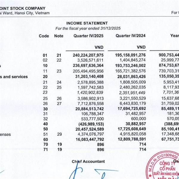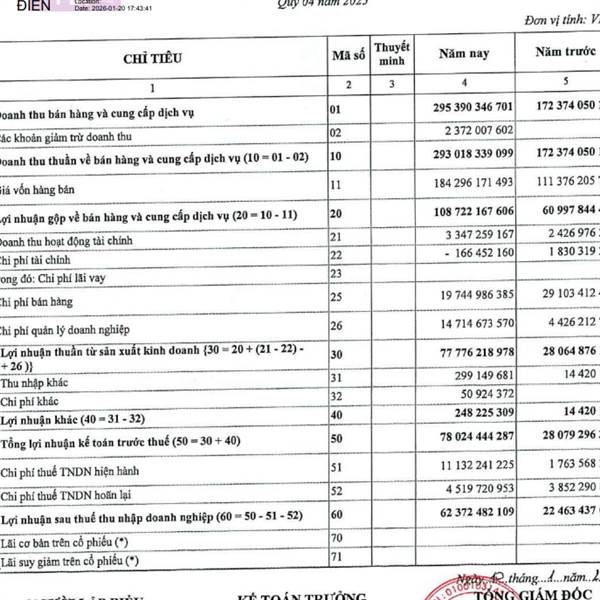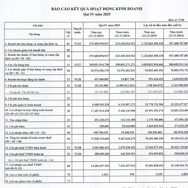 Update sớm BCTC Quý 4 Lãi Lớn