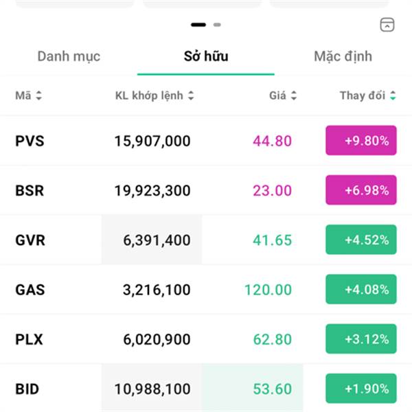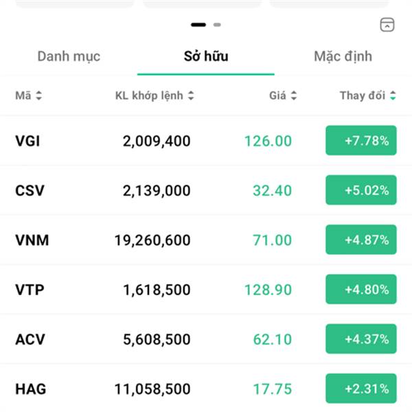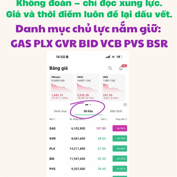 Danh mục chủ lực đang nắm giữ: