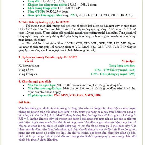 Nhận định xu hướng ngày 16/10/2025 Vnindex đang gặp áp lực chốt lời của thị trường khi chỉ số tăng lên biên cao bên trên, toàn thị trường khối lượng đã suy giảm thấp hơn so với phiên liền trước đó nhưn...Thêm