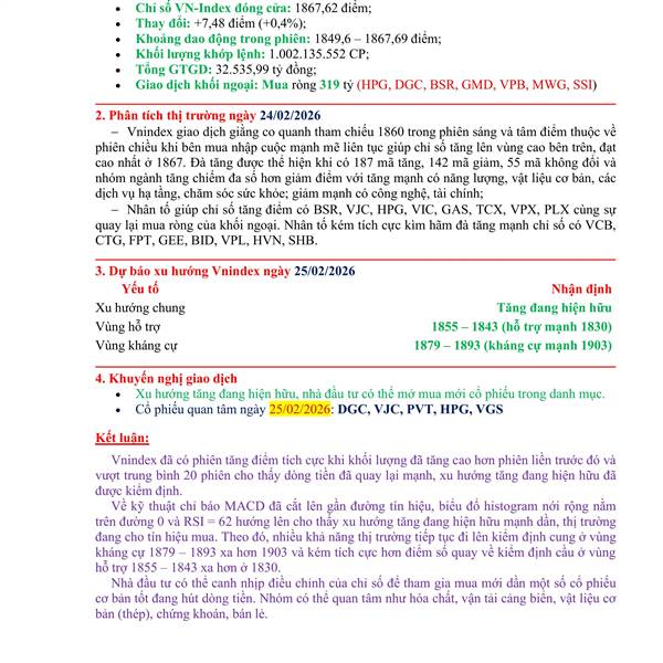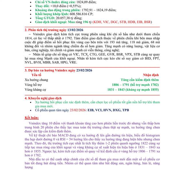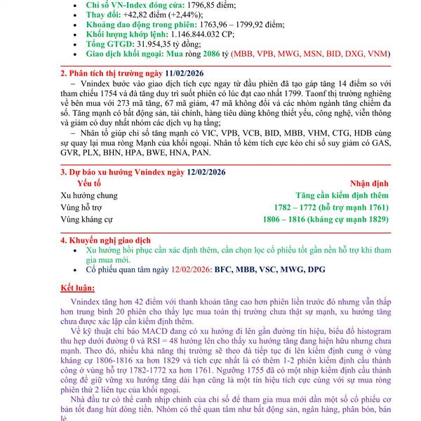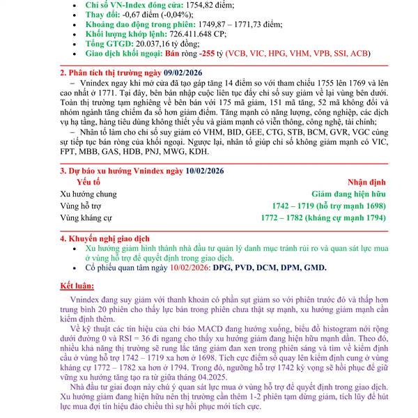 Tổng kết phiên ngày 10/02 và xu hướng phiên 11/02/2026