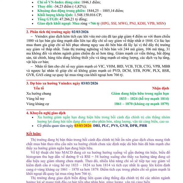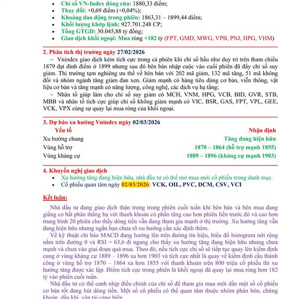Tổng kết phiên 30/01 và xu hướng ngày 02/02/2026 Chỉ số tăng hơn 14 điểm với thanh khoản có phần tăng cao hơn phiên liền trước đó cho thấy sự tích cực của bên mua đã trở lại. Nhưng lực mua toàn thị trư...Thêm