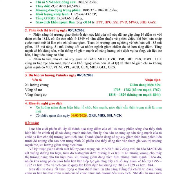 Tổng kết phiên ngày 06/02 và xu hướng ngày 09/02/2026