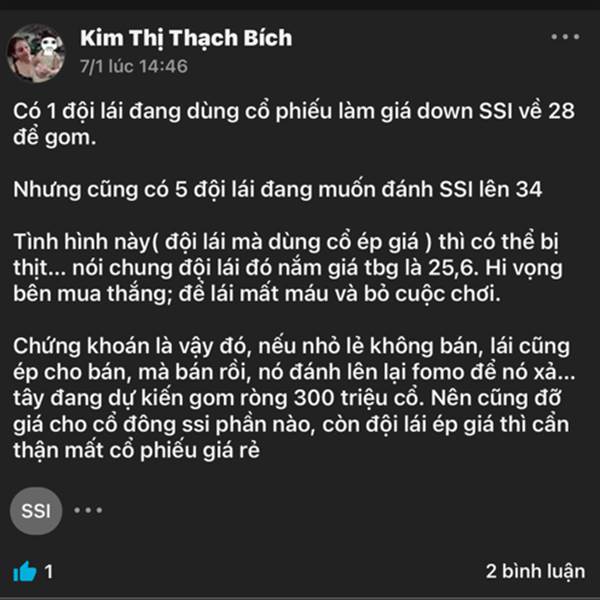 Có 1 đội lái đang dùng cổ phiếu làm giá down SSI về 28 để gom.